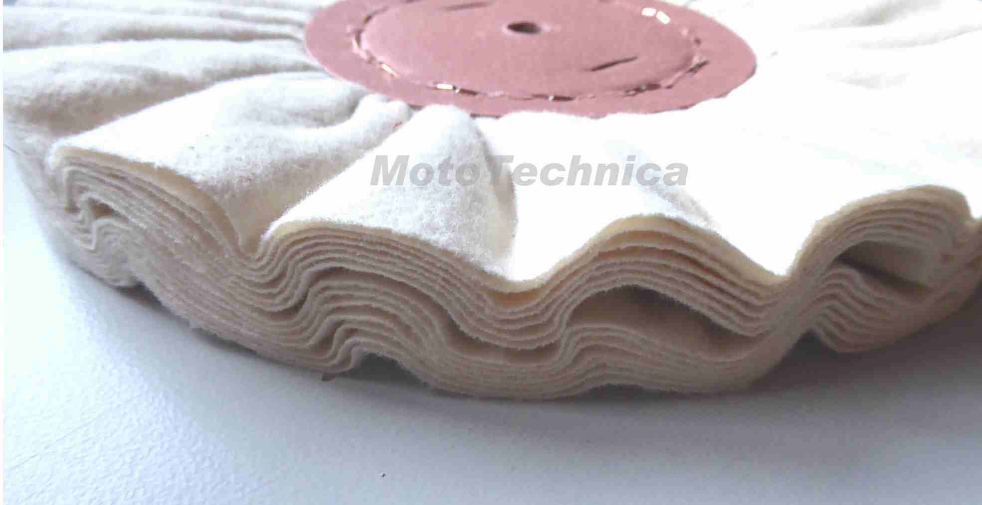 Polierring mit leichter flacher Wellenfaltung in mittelharter bis mittelweichem Stoff als Wellung. Ideal auch für Flächen und auch schmälere Nuten, Rillen und Flächen. Aneinander spannen möglich für breitere Arbeitsfläche Leichte Kühlung. In Profi Qualität.